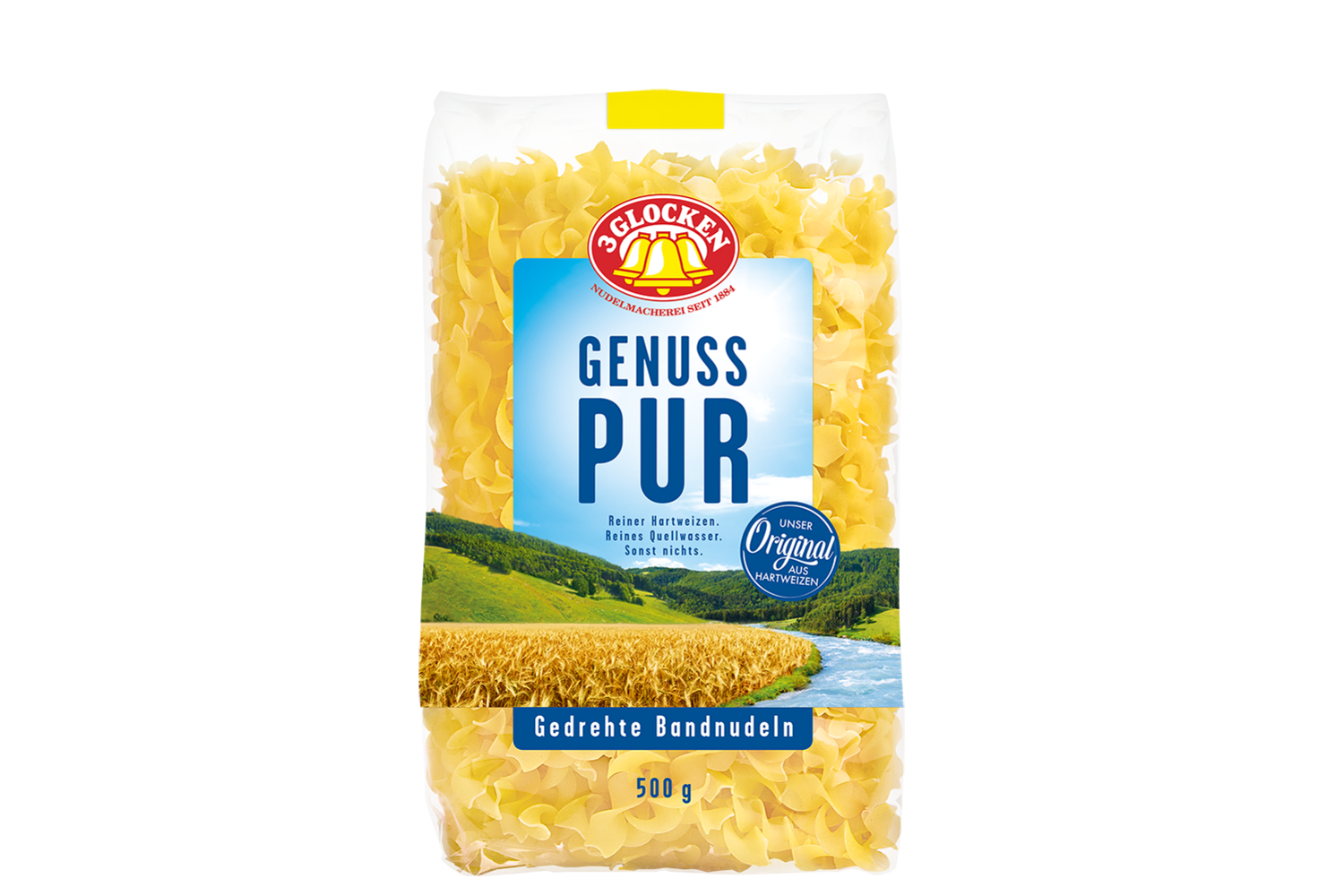 3 GLOCKEN GENUSS PUR Gedrehte Bandnudeln eignen sich besonders gut für leichte Gerichte mit viel Sauce oder auch für leckere Ofengerichte, überbacken.