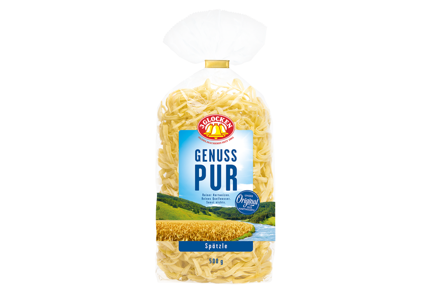 3 GLOCKEN GENUSS PUR Spätzle eignen sich besonders gut für typisch schwäbische Gerichte mit viel Sauce oder auch als Pfannengericht wie z. B. Käsespätzle.