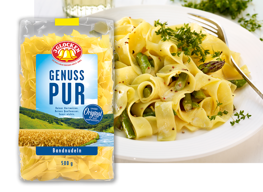 Nudeln, Spargel und Sauce vermischen, auf Teller anrichten, mit Kresse bestreuen und servieren.