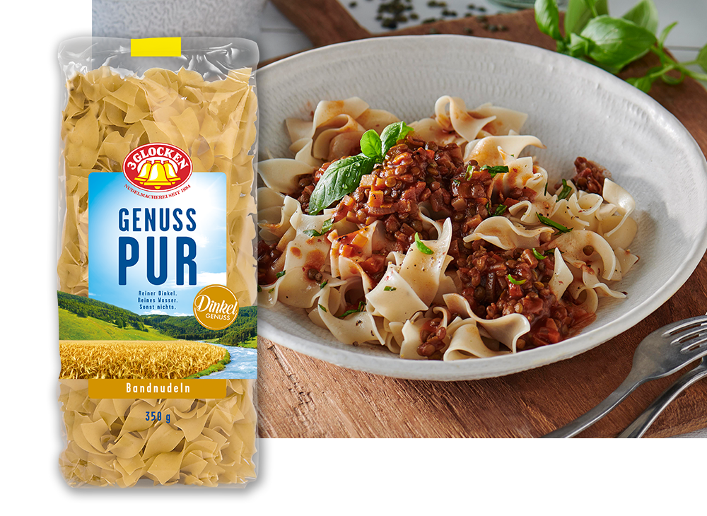 Dinkel Bandnudeln mit Linsenbolognese