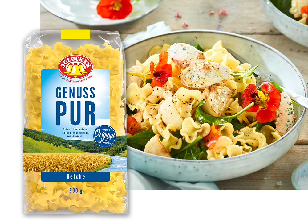 Frühlingsnudeln mit Kräuter-Frischkäse und Blüten